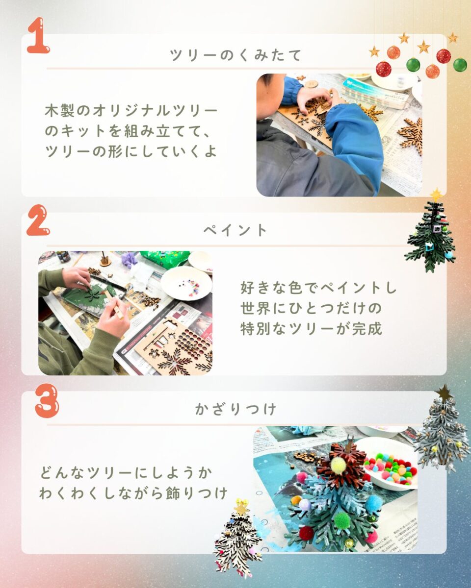 木製のオリジナルツリーキットを組み立てて、好きな色でペイント!